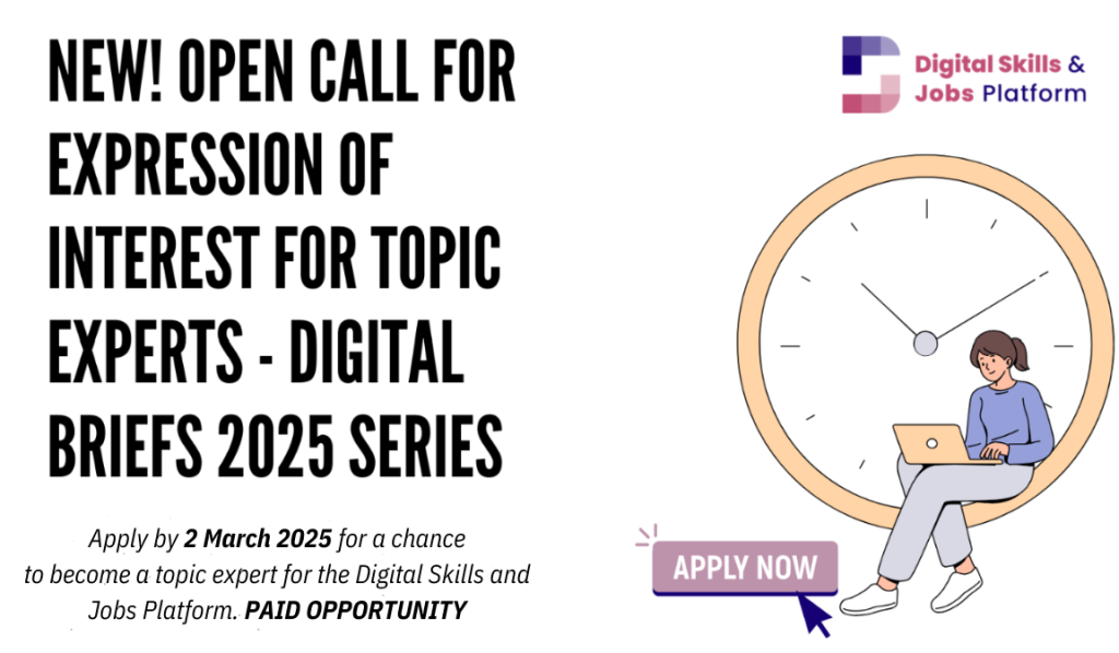 Para a série «Digital Briefs» Platform de 2025 e através de um convite aberto à manifestação de interesse, estamos à procura de especialistas para partilhar as suas ideias sobre 10 temas no centro das competências, do emprego e da tecnologia digitais e na intersecção de alguns dos desafios mais iminentes da sociedade europeia.