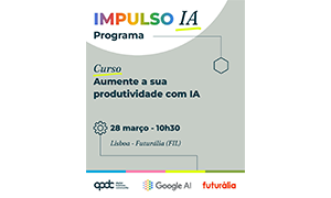 No dia 28 de março de 2025, das 10h30 às 13h00, o Impulso IA, uma iniciativa da APDC e Google, chega a Lisboa, na Futurália no Pavilhão 3. “Aumente a sua Produtividade com IA” com a formadora Sandra Fazenda de Almeida.