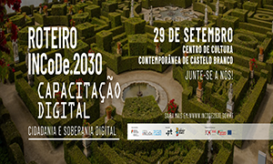 A próxima sessão do Roteiro INCoDe.2030 – Capacitação Digital decorre no próximo dia 29 de setembro, entre as 9h00 e as 16h00, no Centro de Cultura e Arte Contemporânea de Castelo Branco, e com transmissão online e em direto no site do INCoDe.2030.