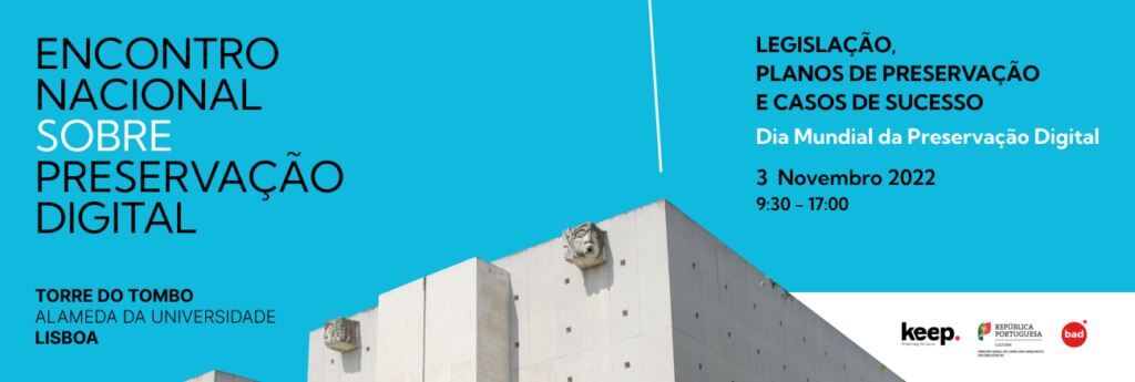 Encontro Nacional sobre Preservação Digital, decorre já no dia 3 de novembro de 2022, dia Mundial da Preservação Digital, no Arquivo Nacional da Torre do Tombo, em Lisboa.