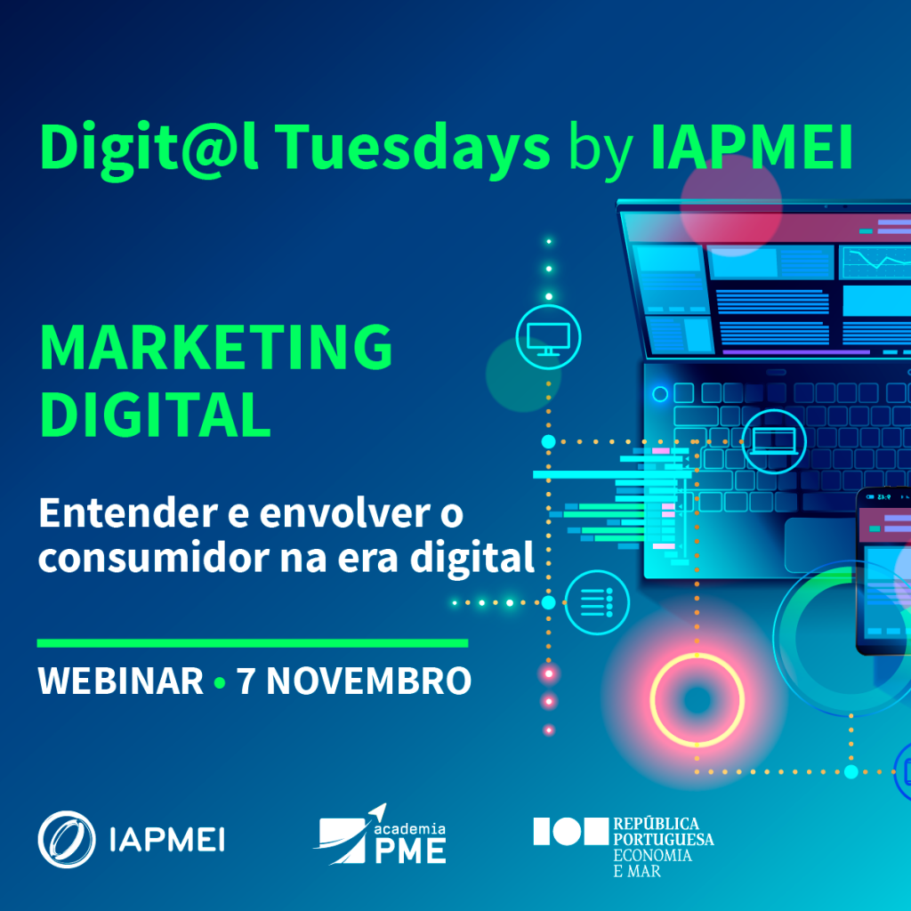 Realiza-se no dia 7 de novembro o webinar “Marketing Digital: Entender e envolver o consumidor na era digital”, o terceiro do ciclo de webinars Digit@l Tuesdays, dinamizado pela Academia de PME Digital do IAPMEI.