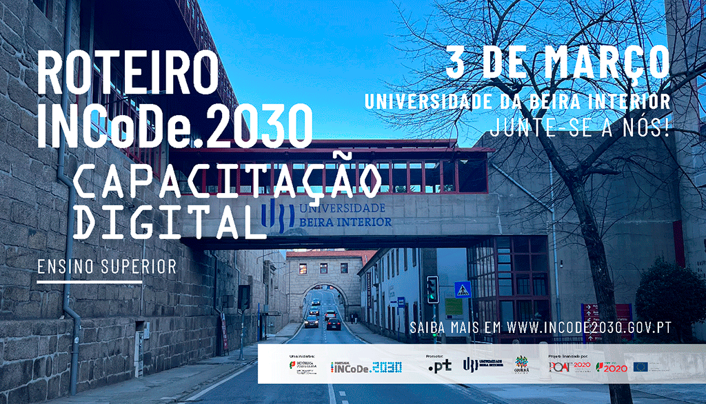 A próxima sessão do Roteiro INCoDe.2030 – Capacitação Digital decorre na Covilhã, no dia 3 de março, a partir das 9h00, no Auditório das Sessões Solenes da Universidade da Beira Interior.