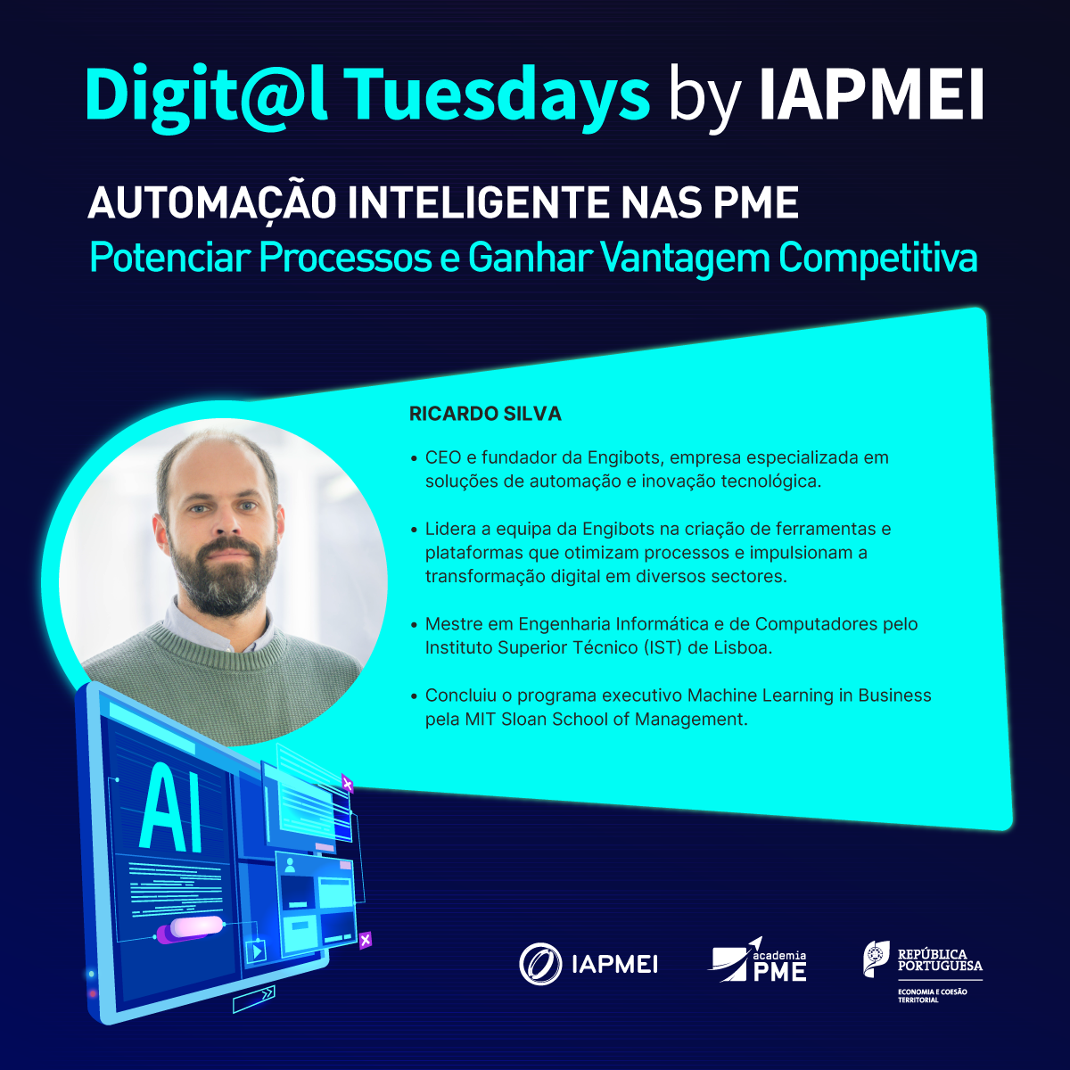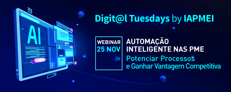 Realiza-se no dia 25 de novembro mais um webinar integrado na iniciativa da Academia de PME do IAPMEI, Digit@l Tuesdays, desta vez com o tema “Automação Inteligente nas PME: Potenciar Processos e Ganhar Vantagem Competitiva”.