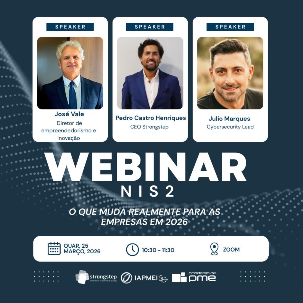 Realiza-se no dia 25 de março o webinar “NIS2 – O que muda realmente para as empresas em 2026”, numa iniciativa da Academia de PME do IAPMEI, em parceria com a Strongstep.