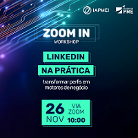 Realiza-se no dia 26 de novembro o workshop “LinkedIn na Prática: transformar perfis em motores de negócio”, integrado no ciclo Zoom In: Competências Digitais “Chave na Mão”, uma iniciativa da Academia de PME do IAPMEI.