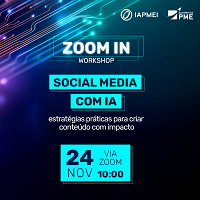 Realiza-se no dia 24 de novembro o wokshop “Social Media com IA: estratégias práticas para criar conteúdo com impacto”, integrado no ciclo Zoom In: Competências Digitais “Chave na Mão”, uma iniciativa da Academia de PME do IAPMEI.